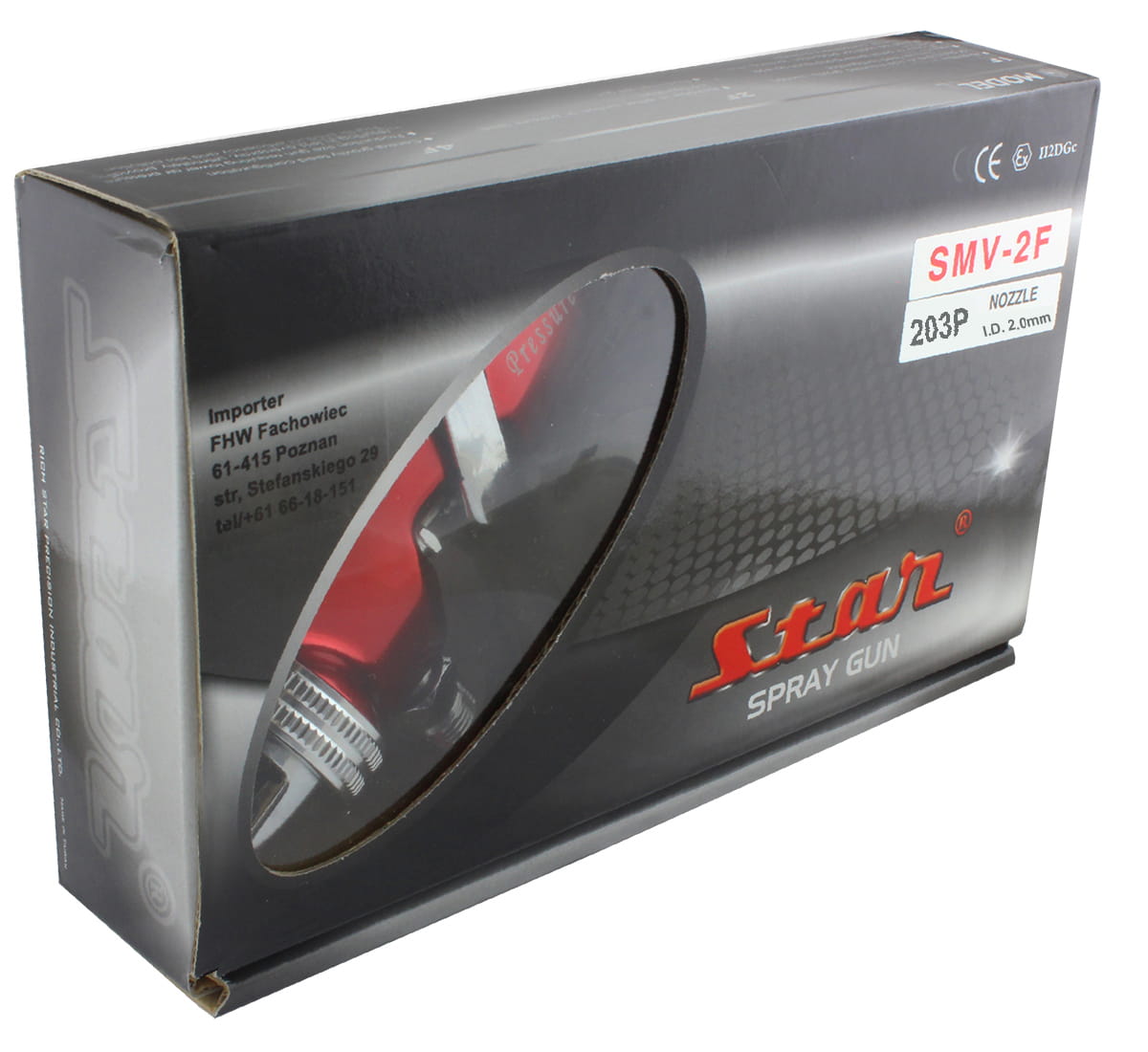 Pistolety STAR to najwyższa jakość wśród profesjonalnych pistoletów lakierniczych. Model SMV 2F 2.0mm bez zbiornika to wysokiej klasy pistolet lakierniczy wykonany w technologii RP (zredukowane ciśnienie), przeznaczony do współpracy między innymi z zbiornikami malarskimi ciśnieniowymi.