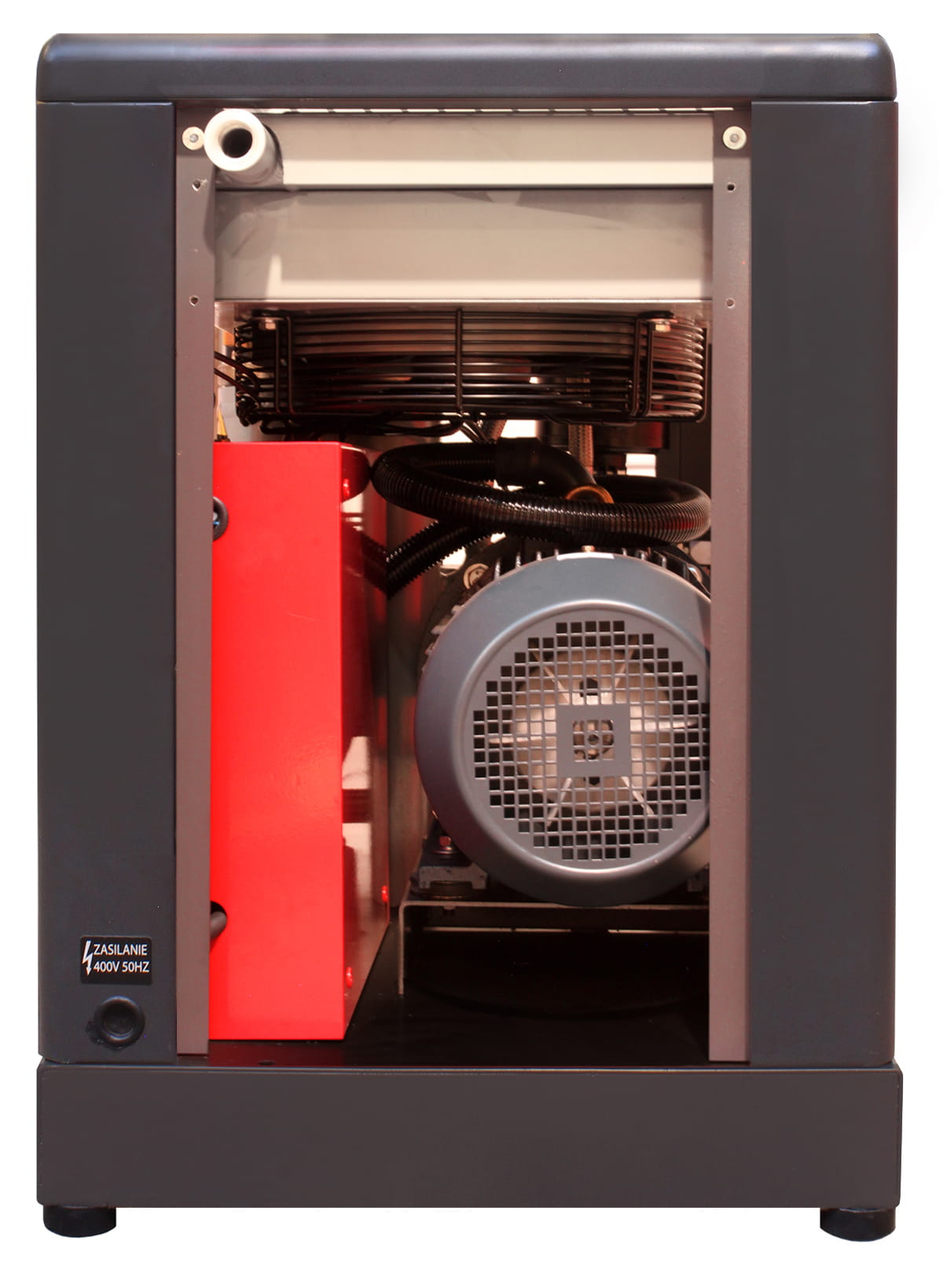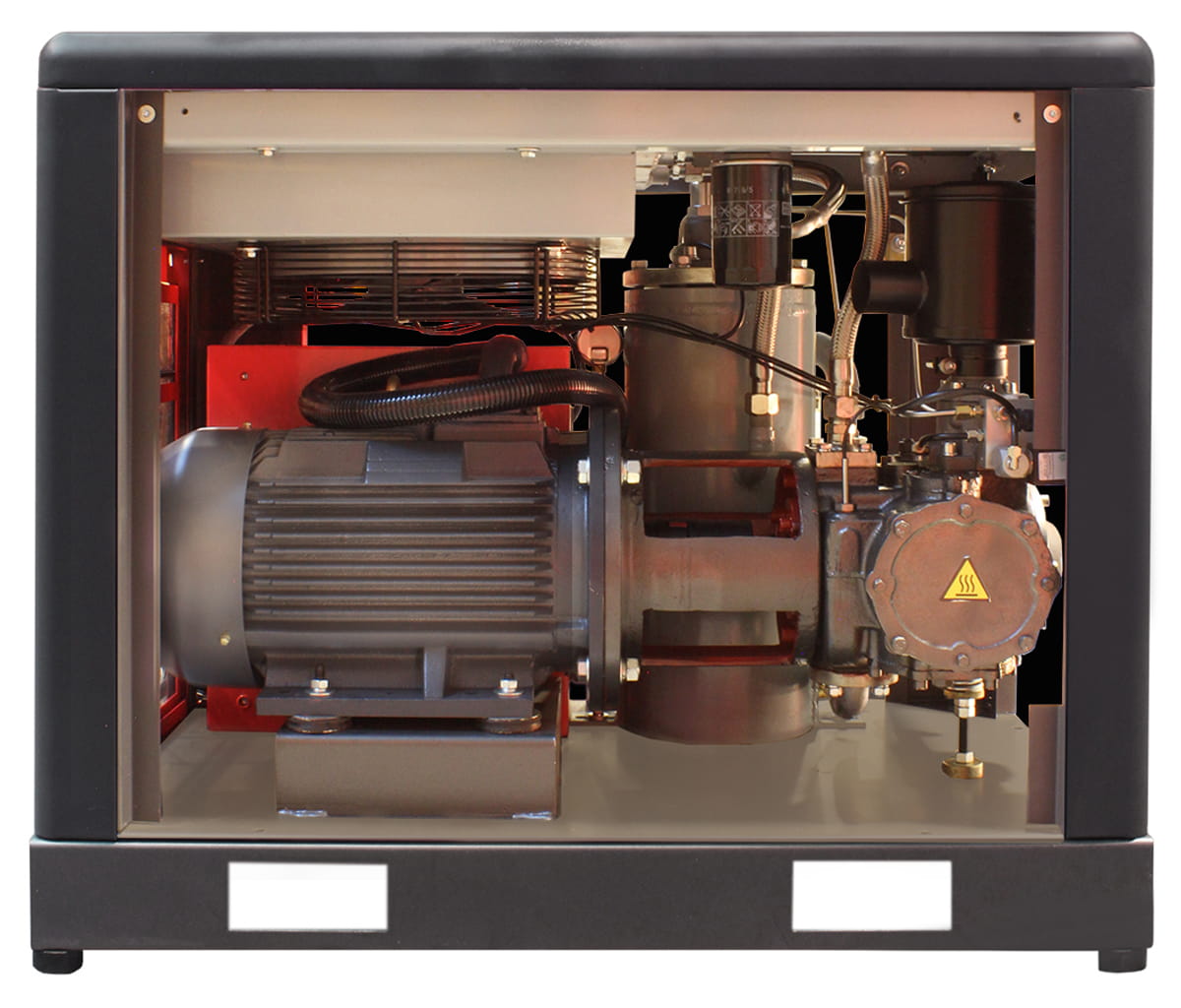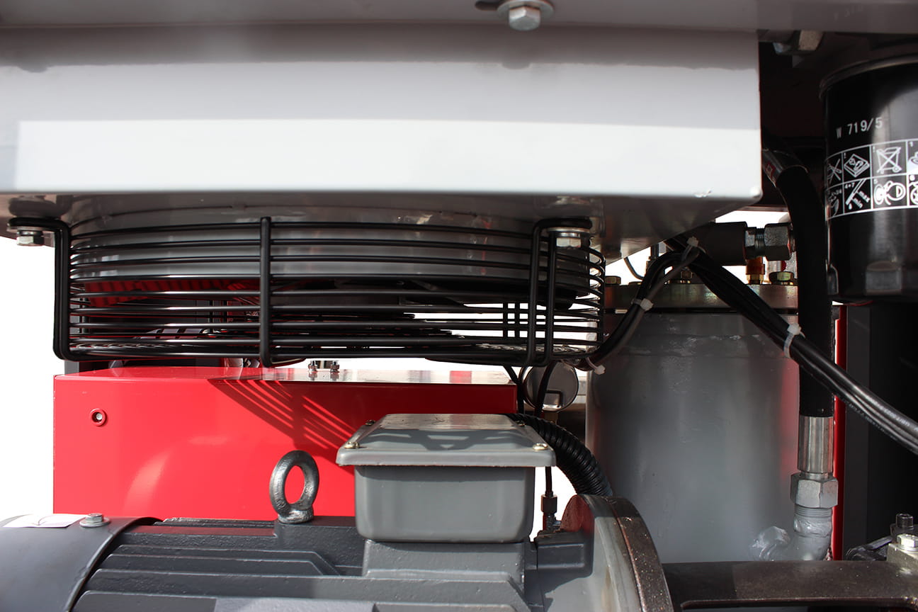 Silnik elektryczny o sprawności klasy premium efficiency IE3 dzięki zastosowaniu materiałów o zwiększonej zawartości miedzi w stojanie oraz aluminum w wirniku przyczynia się do jeszcze większych oszczędność energii elektrycznej pobieranej podczas rozruchu jak i wielogodzinnej pracy sprężarki.
