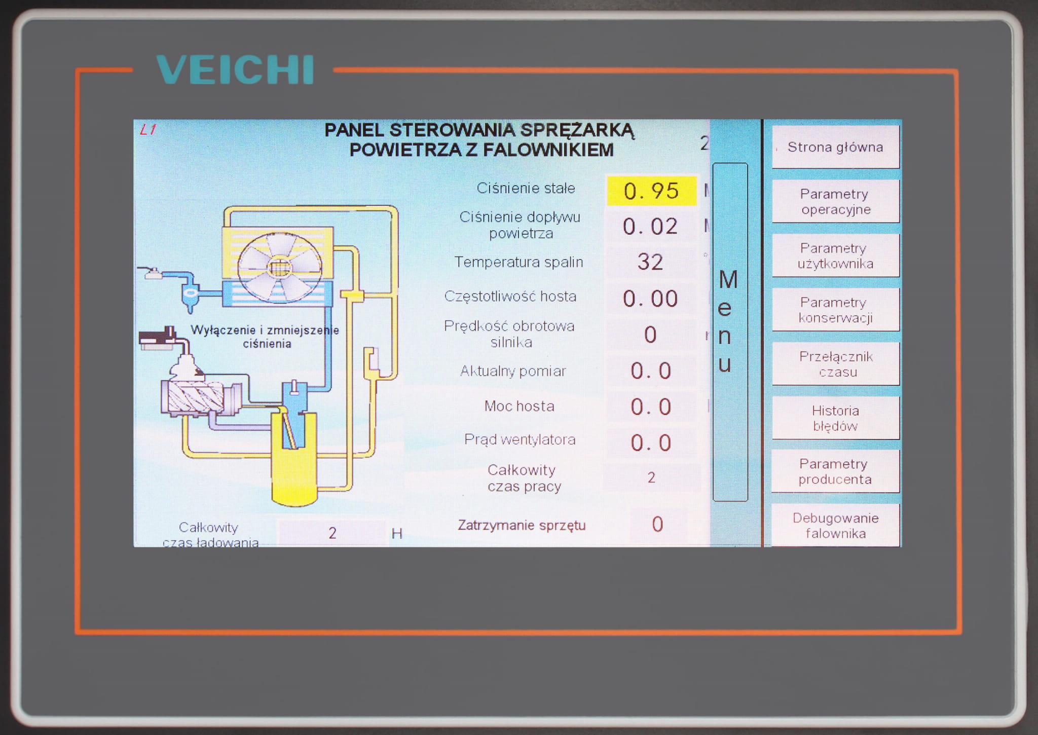 - kontrola przepracowanych godzin całkowita (na obciążeniu + biegu jałowym).