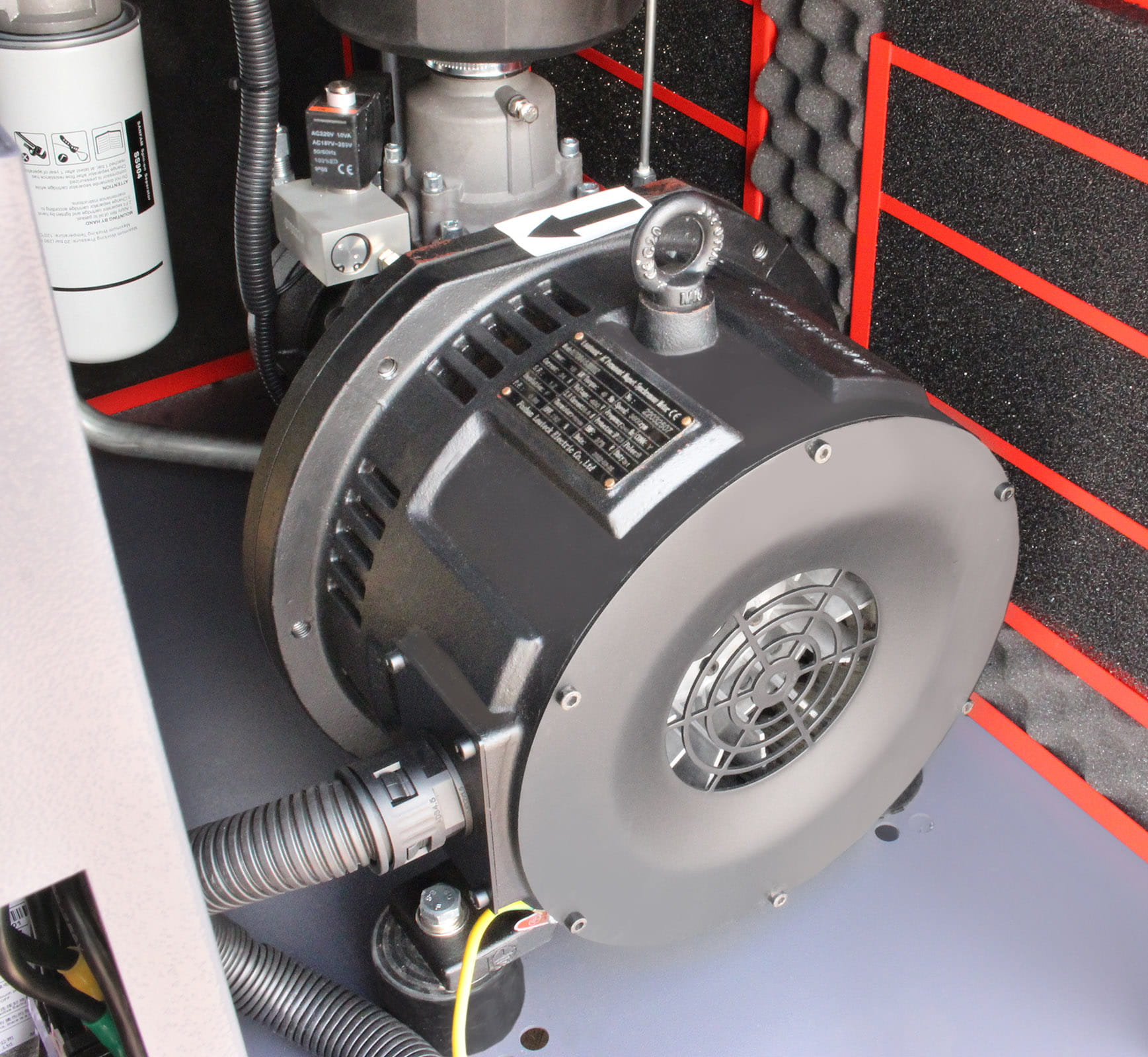 W sprężarce został zastosowany synchroniczny silnik z magnesami trwałymi o sprawności klasy premium efficiency IE3 , pozwalający generować moment obrotowy od zerowej prędkości. Takie rozwiązanie pozwoliło na zmniejszenie gabarytów silnika oraz znaczne wyciszenie.