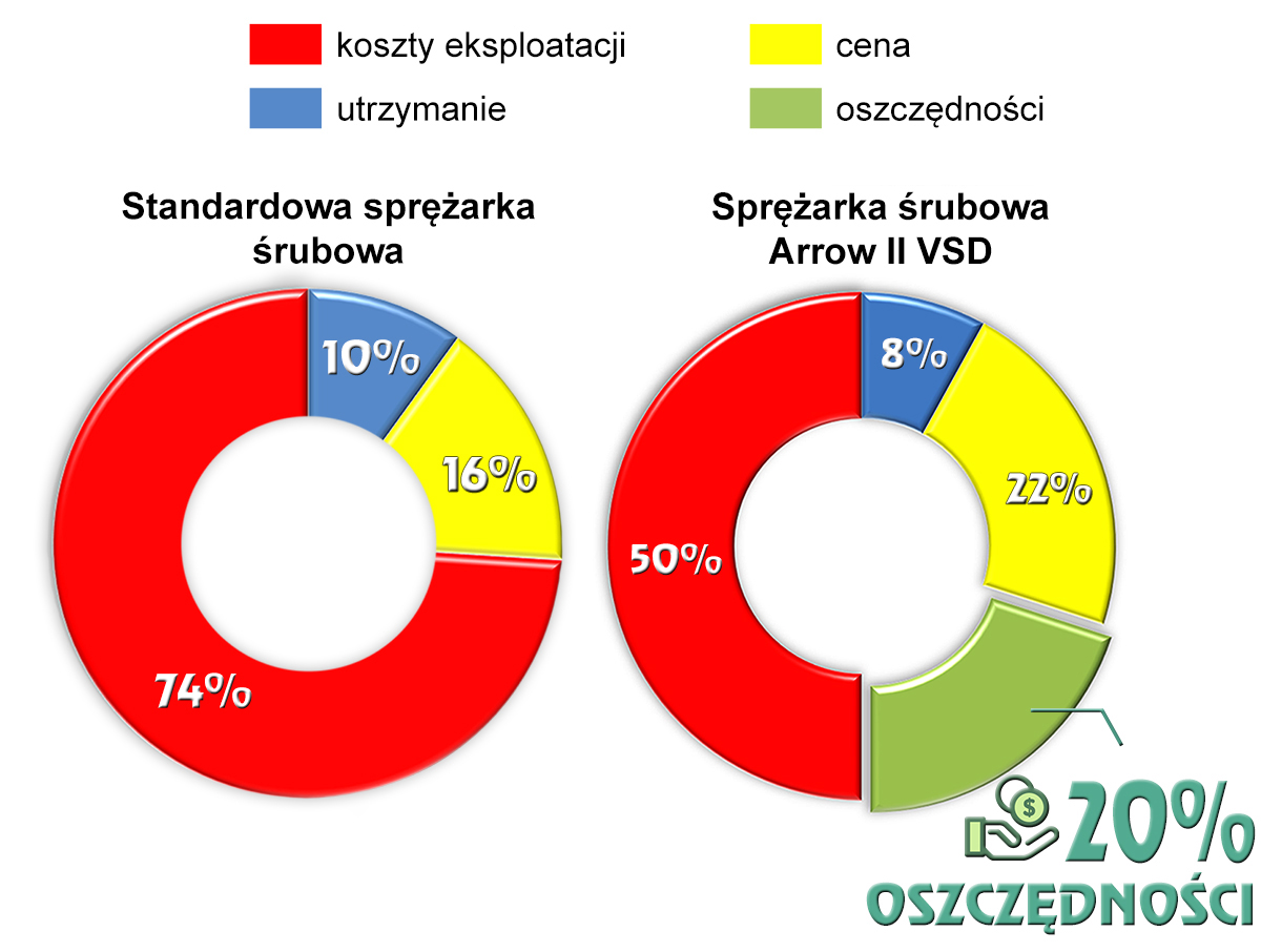 W odpowiedzi na zapotrzebowanie naszych Klientów oraz aktualną sytuację na rynku energii elektrycznej wprowadzamy do naszej oferty sprężarkę śrubową ARROW II 37kW VSD z falownikiem umożliwiającym płynną regulację wydajności i dopasowanie jej do zapotrzebowania na powietrze w danej chwili.