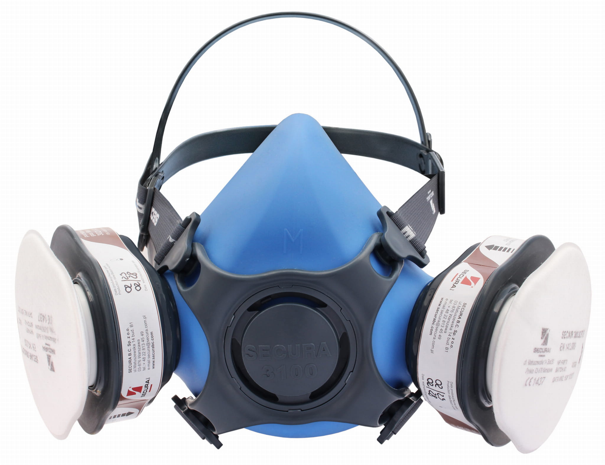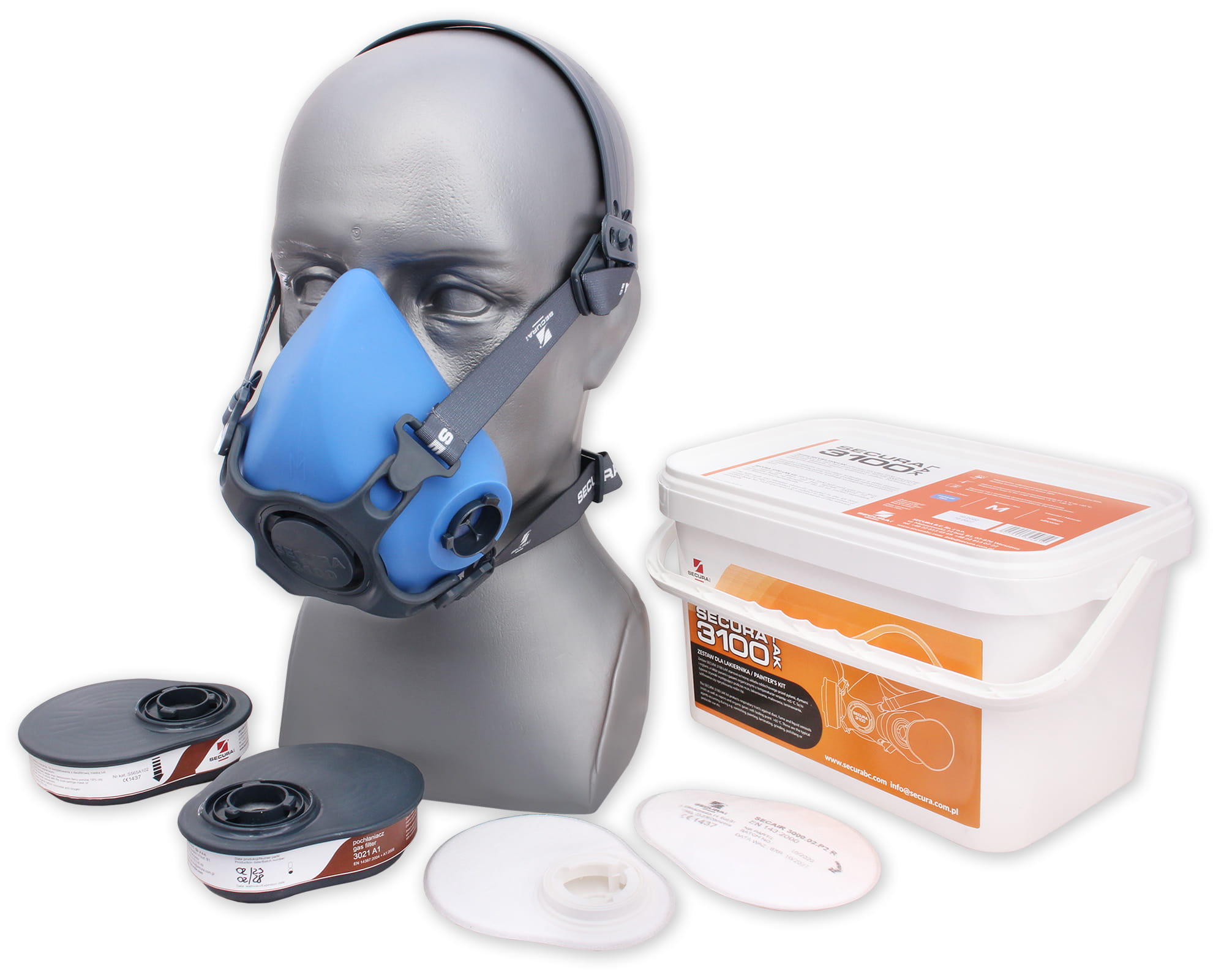 SECURA 3100 to gotowy zestaw ochrony układu oddechowego przed szkodliwymi substancjami występującymi pod postacią aerozoli (pyły, dymy, mgły), a także parami i gazami organicznymi o temperaturze wrzenia >65°C oraz obu tych postaci łącznie.