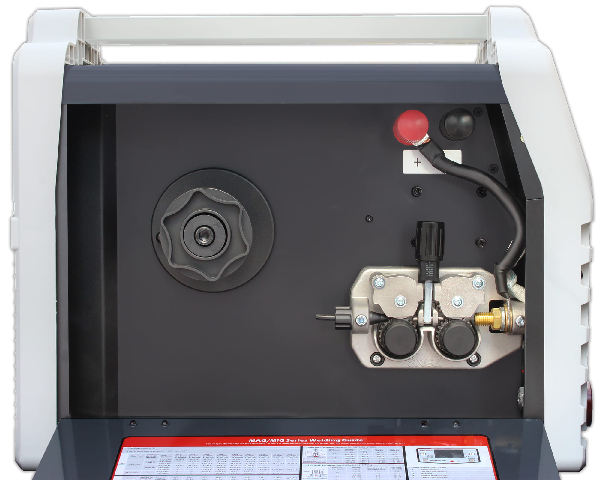 AUTO – synergic settings – automatic adjustment of welding parameters such as voltage, arc current, and wire feed speed. With a single knob, the user can simultaneously adjust all these parameters.