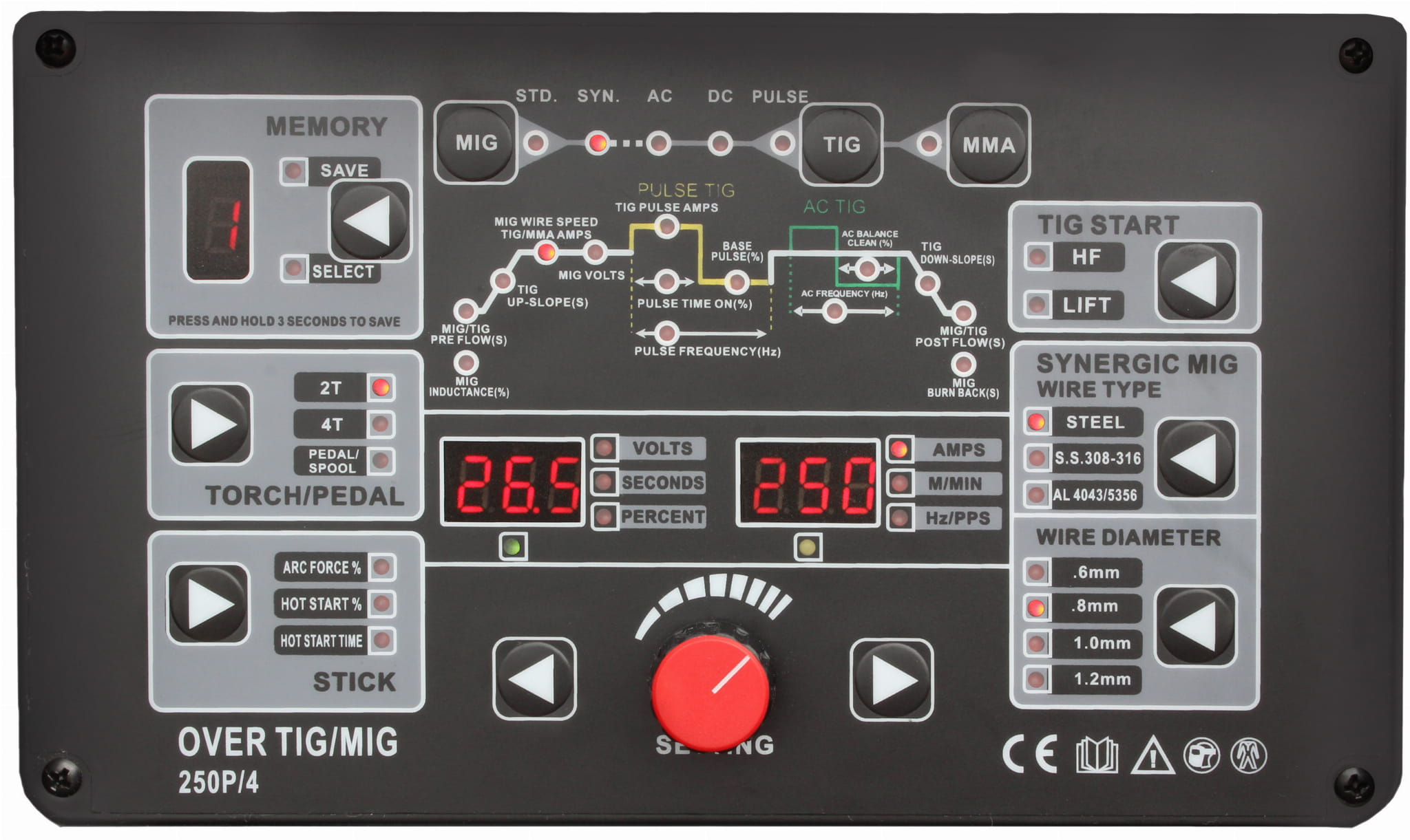 Jako pierwszy na polskim rynku, OVER TIGMIG 250 umożliwia spawanie metodami MIG/MAG, TIG AC/DC oraz MMA.