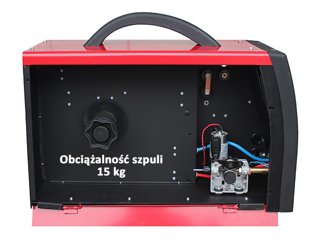 The semi-automatic welder is adapted for mounting a D300 15 kg welding wire spool.