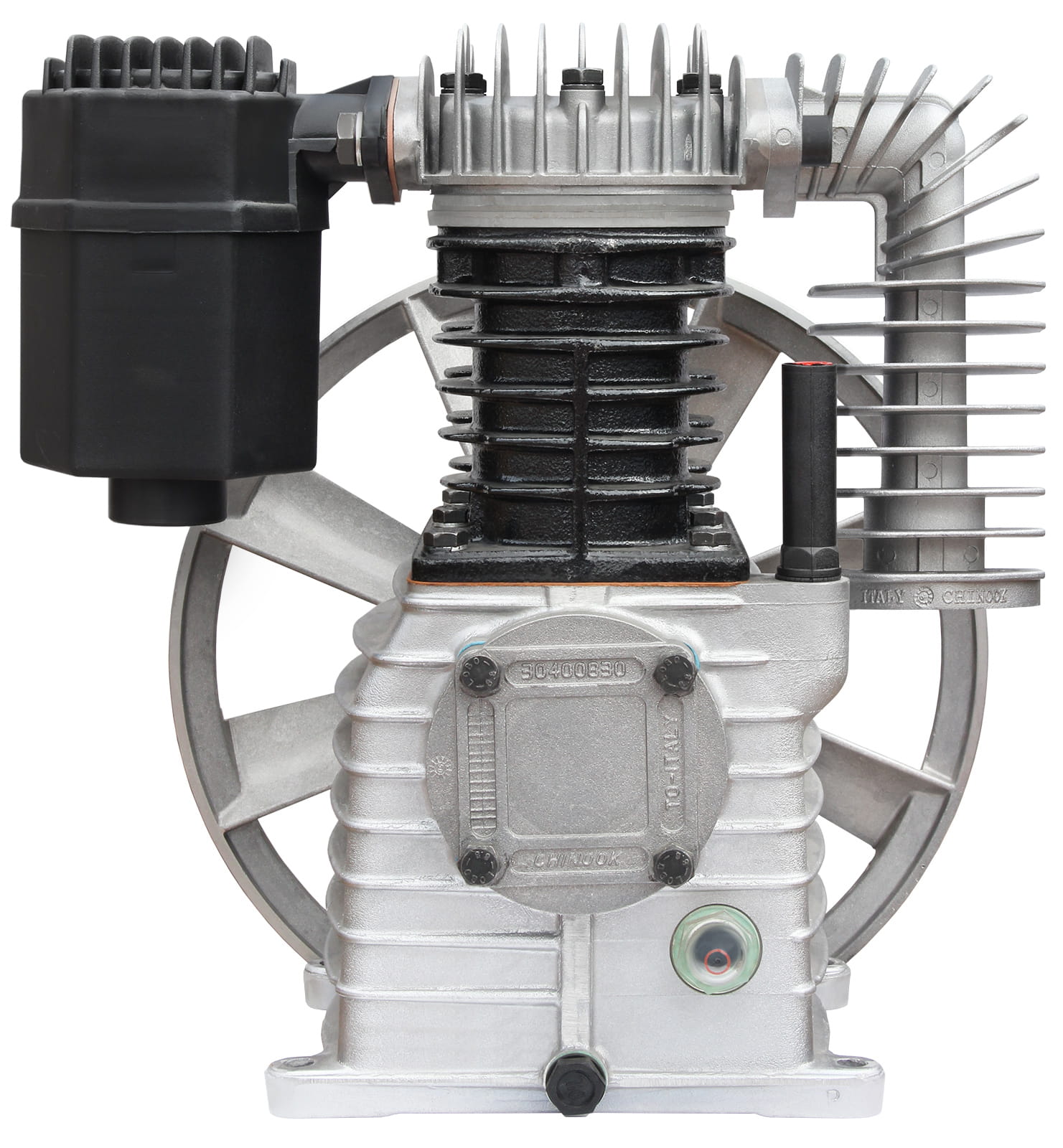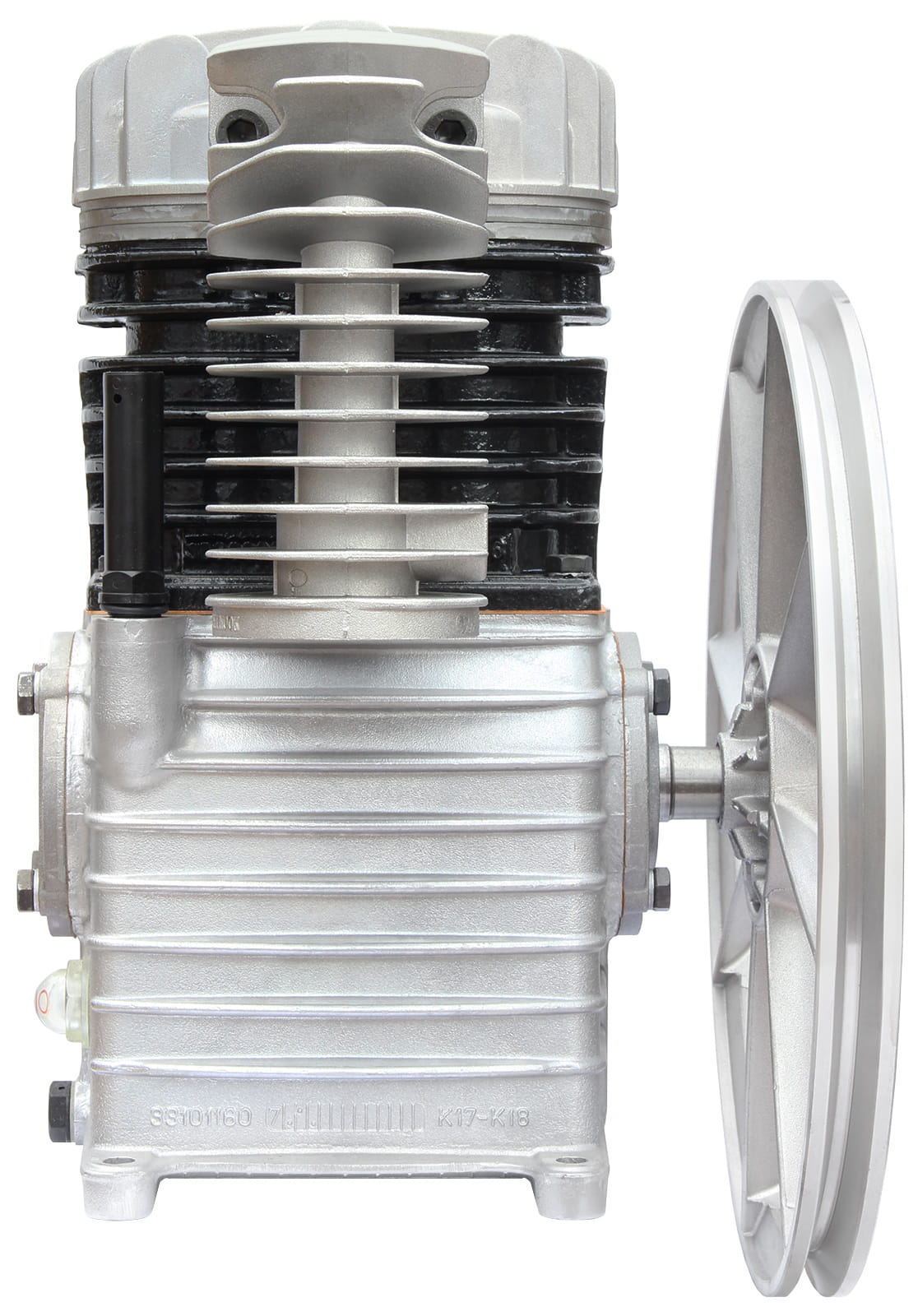 Wysokiej klasy agregat sprężarkowy z żeliwnym blokiem, dwutłokowy, jednostopniowy.