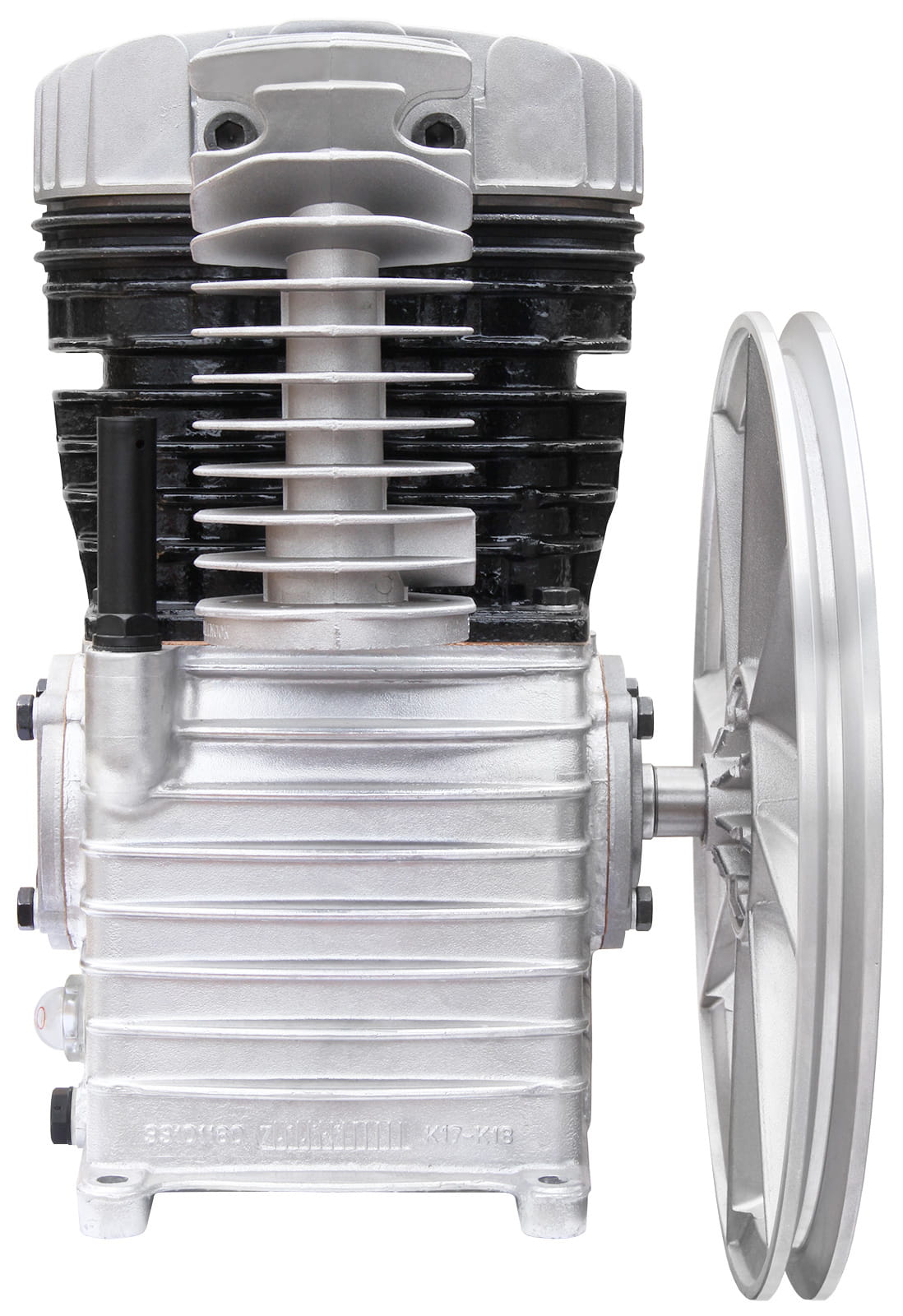 Wysokiej klasy agregat sprężarkowy z żeliwnym blokiem, dwutłokowy, jednostopniowy.