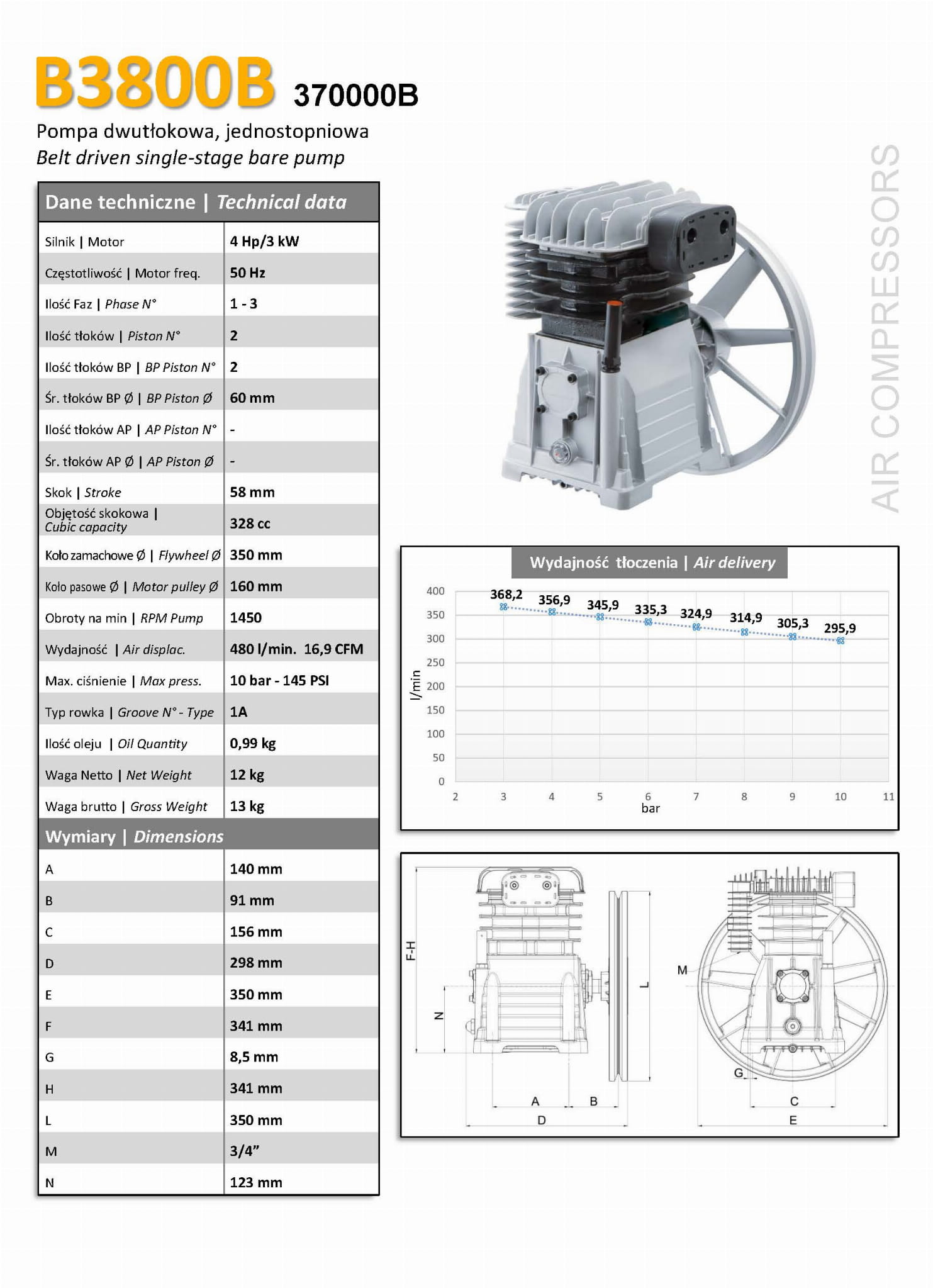Wysokiej klasy agregat sprężarkowy z żeliwnym blokiem, dwutłokowy, jednostopniowy.