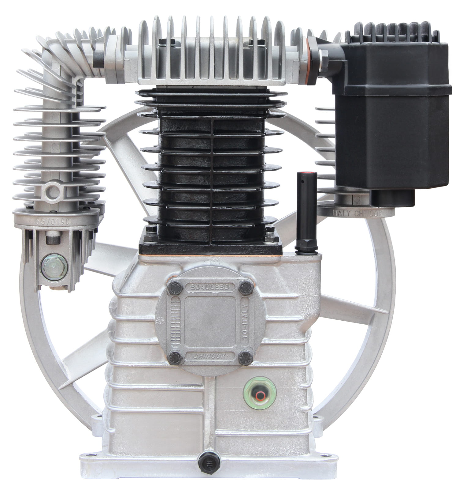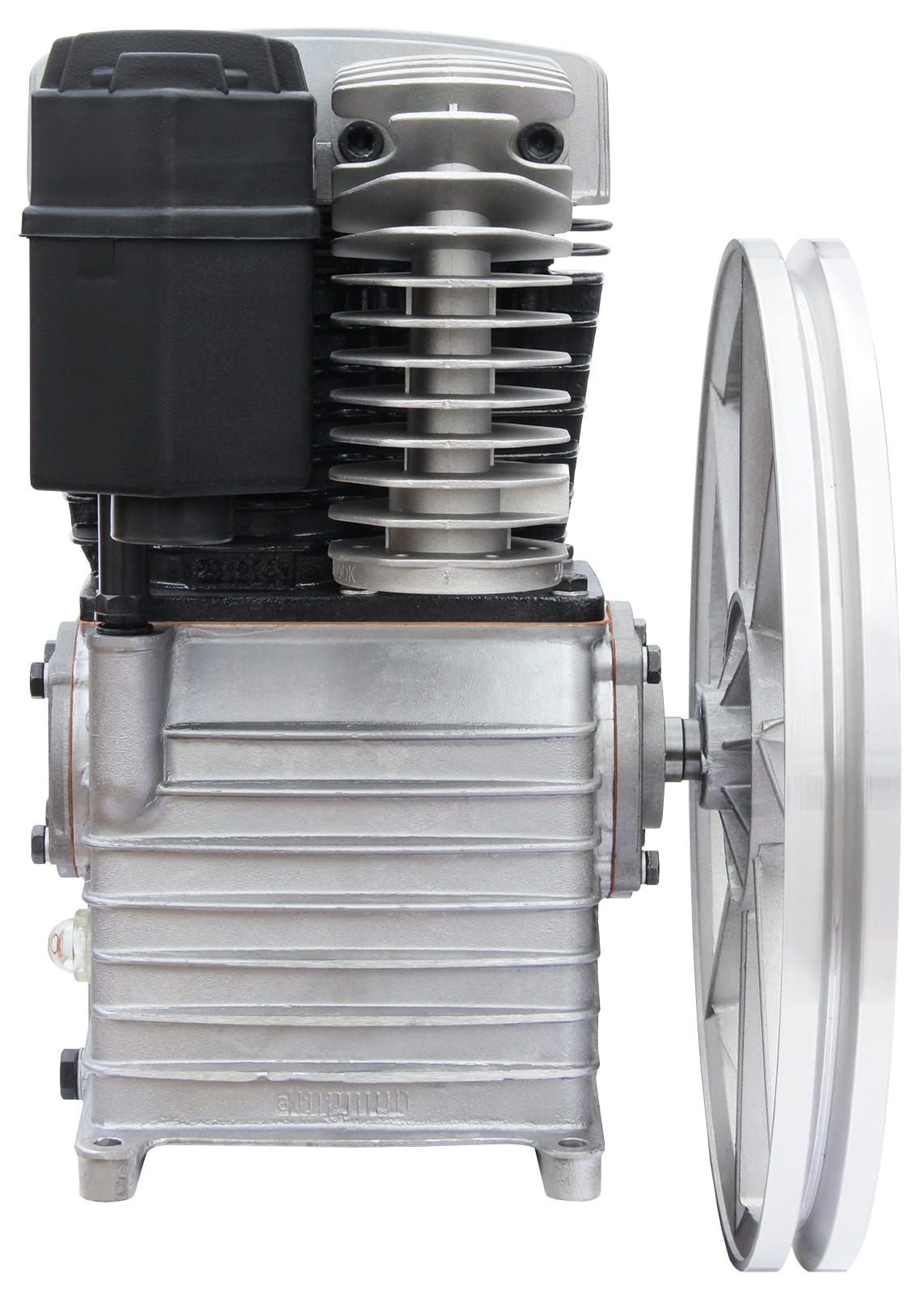 Wysokiej klasy agregat sprężarkowy z żeliwnym blokiem, dwutłokowy, dwustopniowy.
