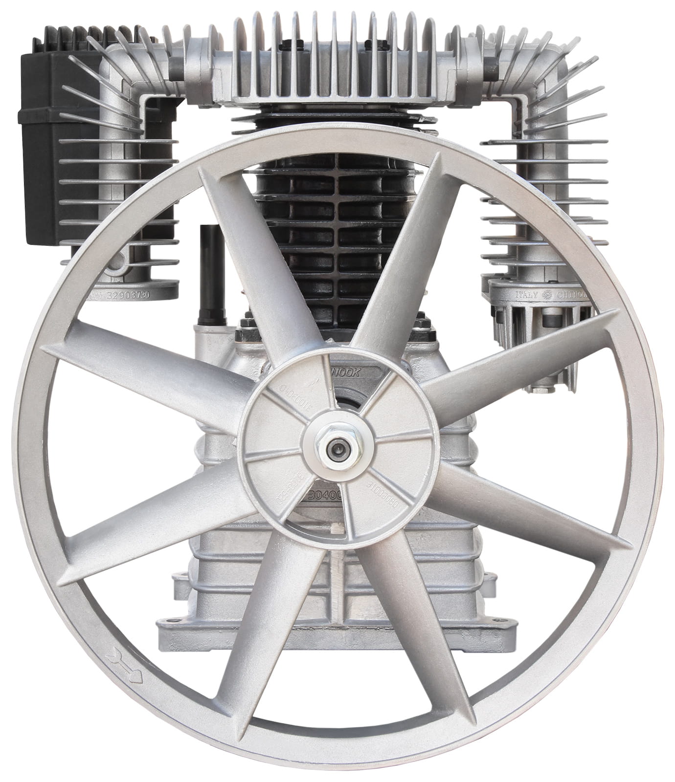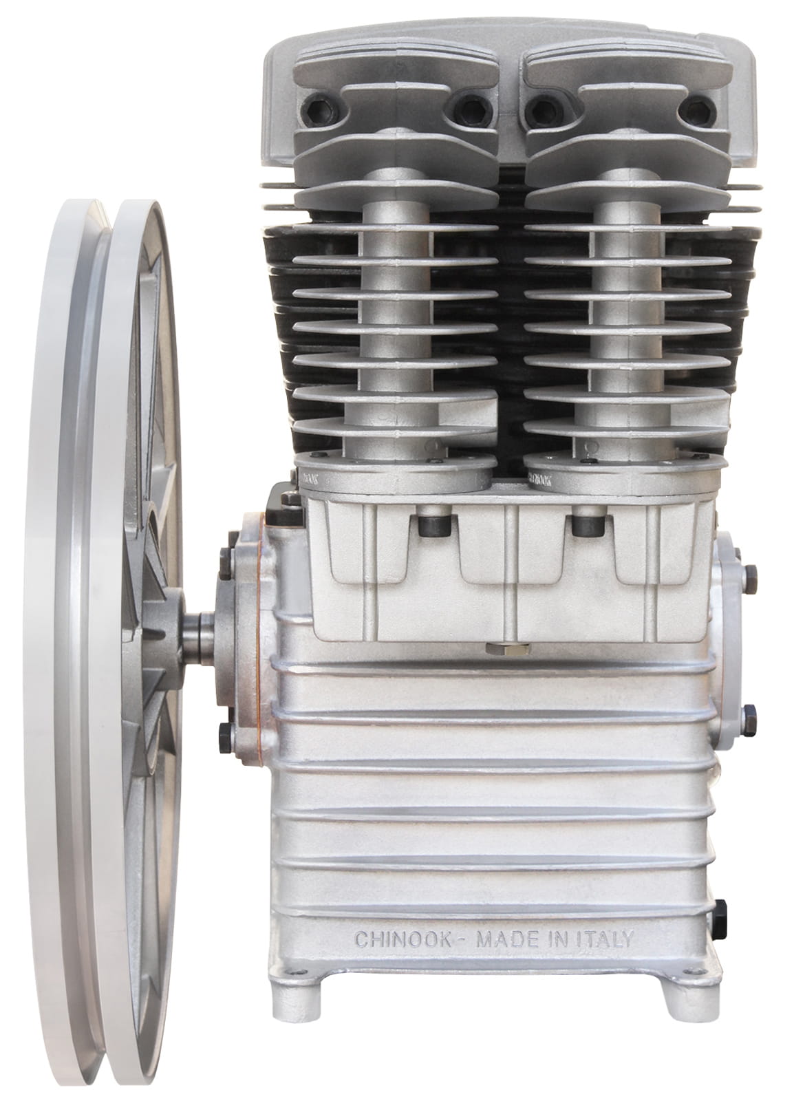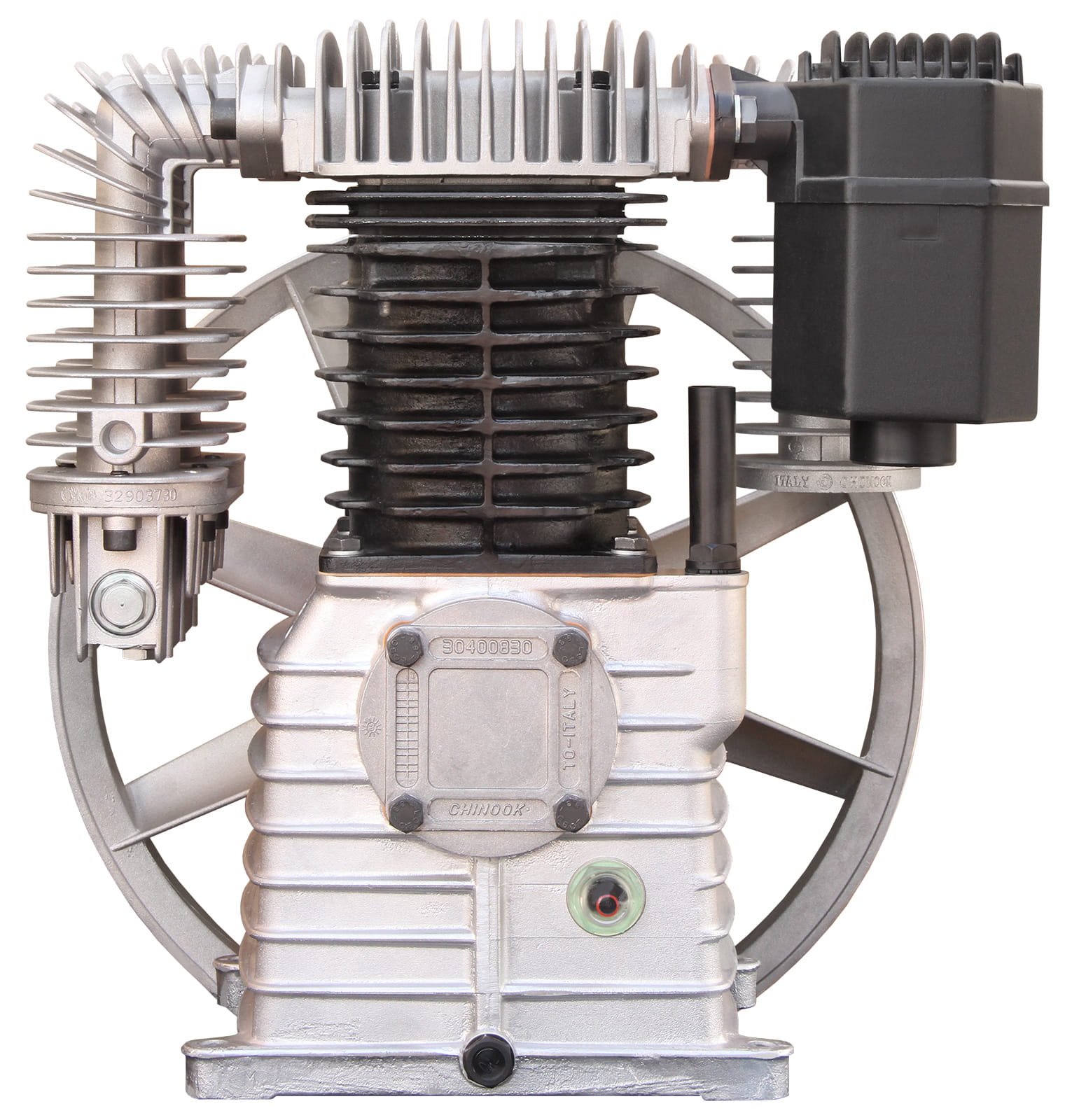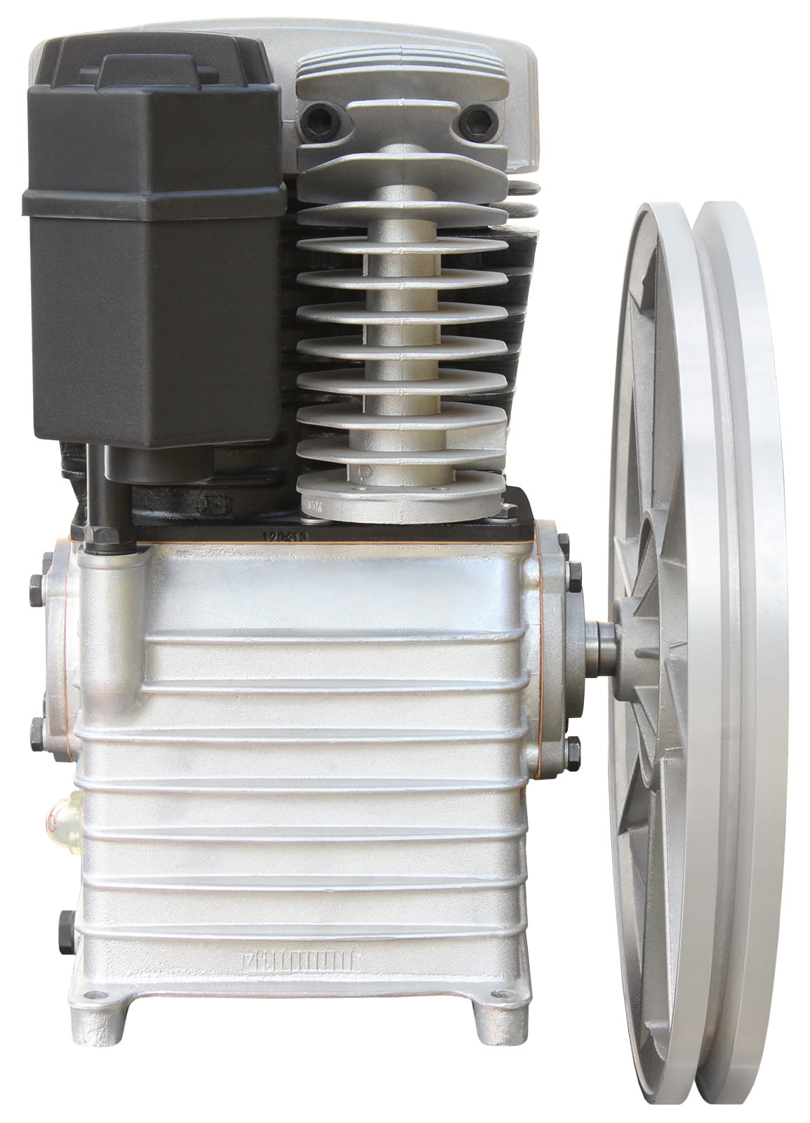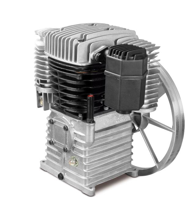 Wysokiej klasy agregat sprężarkowy z żeliwnym blokiem, dwutłokowy, dwustopniowy.