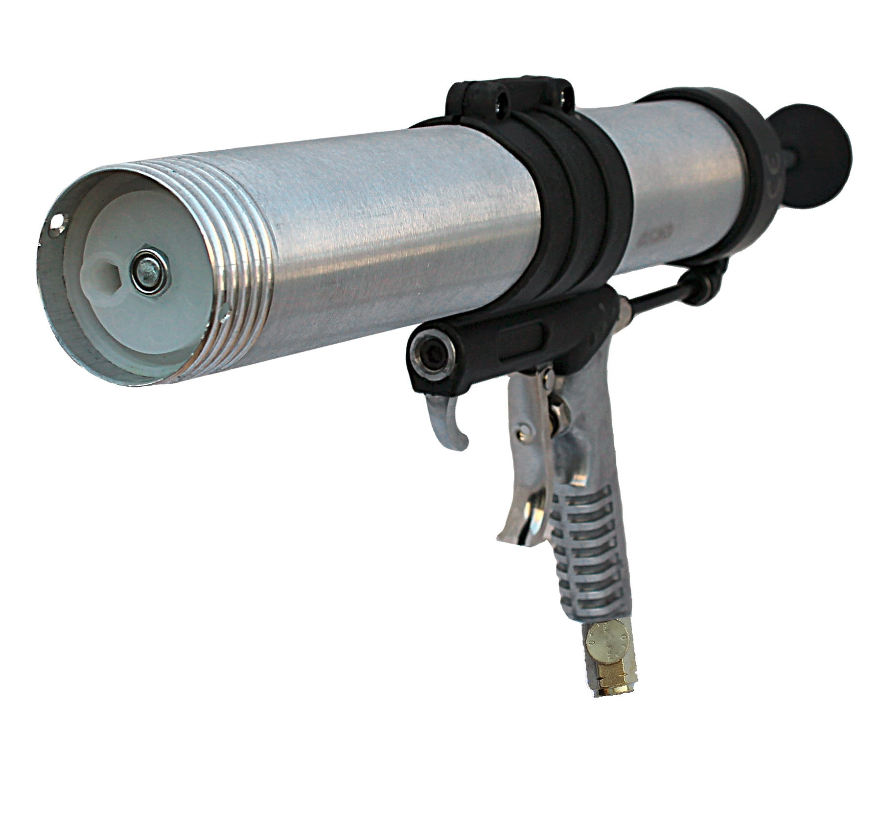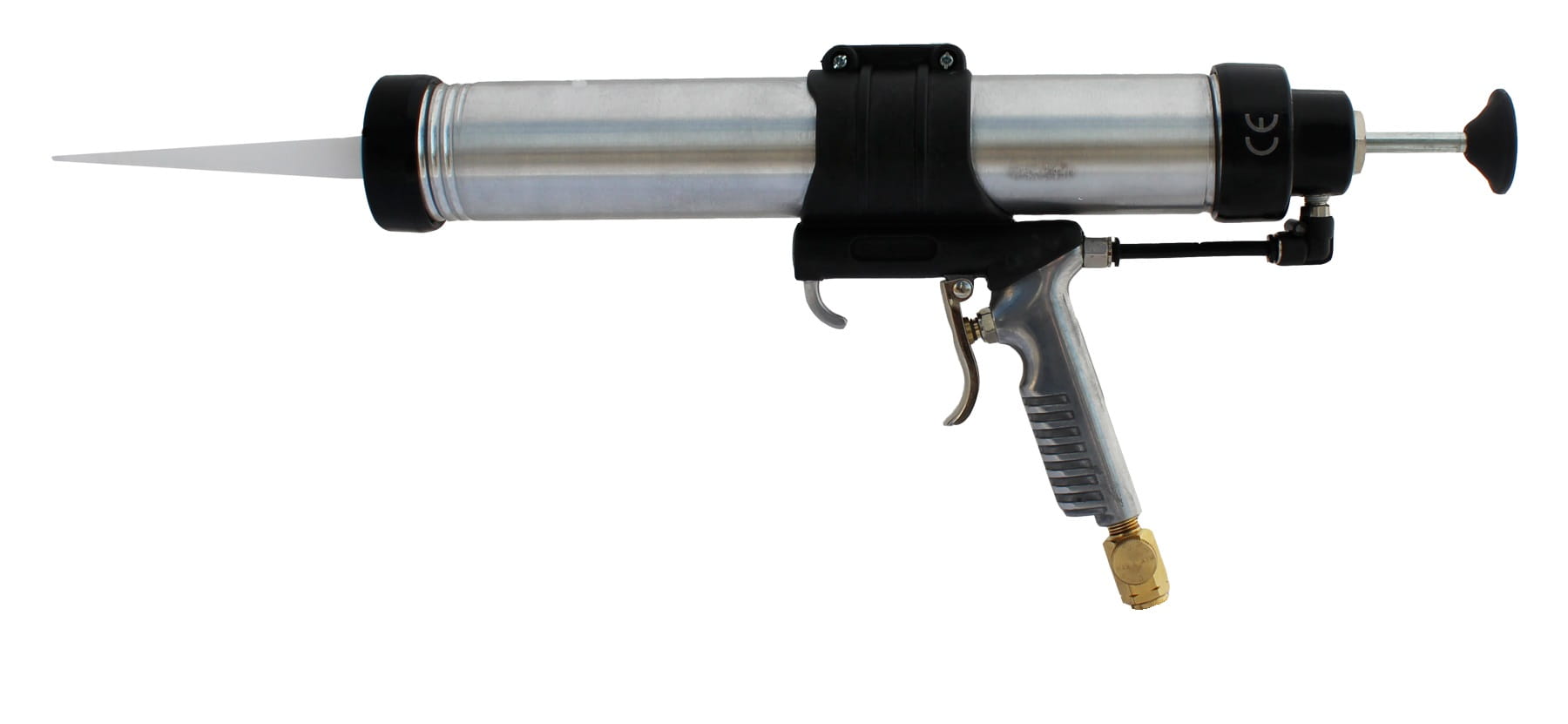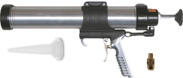 Profesjonalny pneumatyczny pistolet do wyciskania mas uszczelniających, silikonów i klejów (z wyłączeniem klejów do szyb samochodowych). Rodzaj możliwego wkładu kartusze lub saszetki.