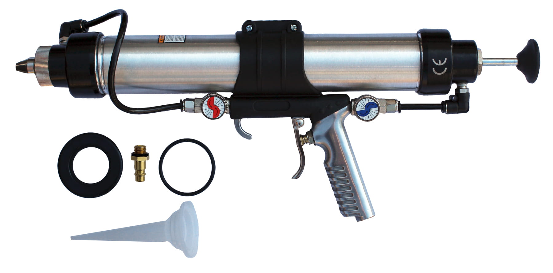 Profesjonalny pneumatyczny pistolet do wyciskania mas uszczelniających, silikonów i klejów (z wyłączeniem klejów do szyb samochodowych).