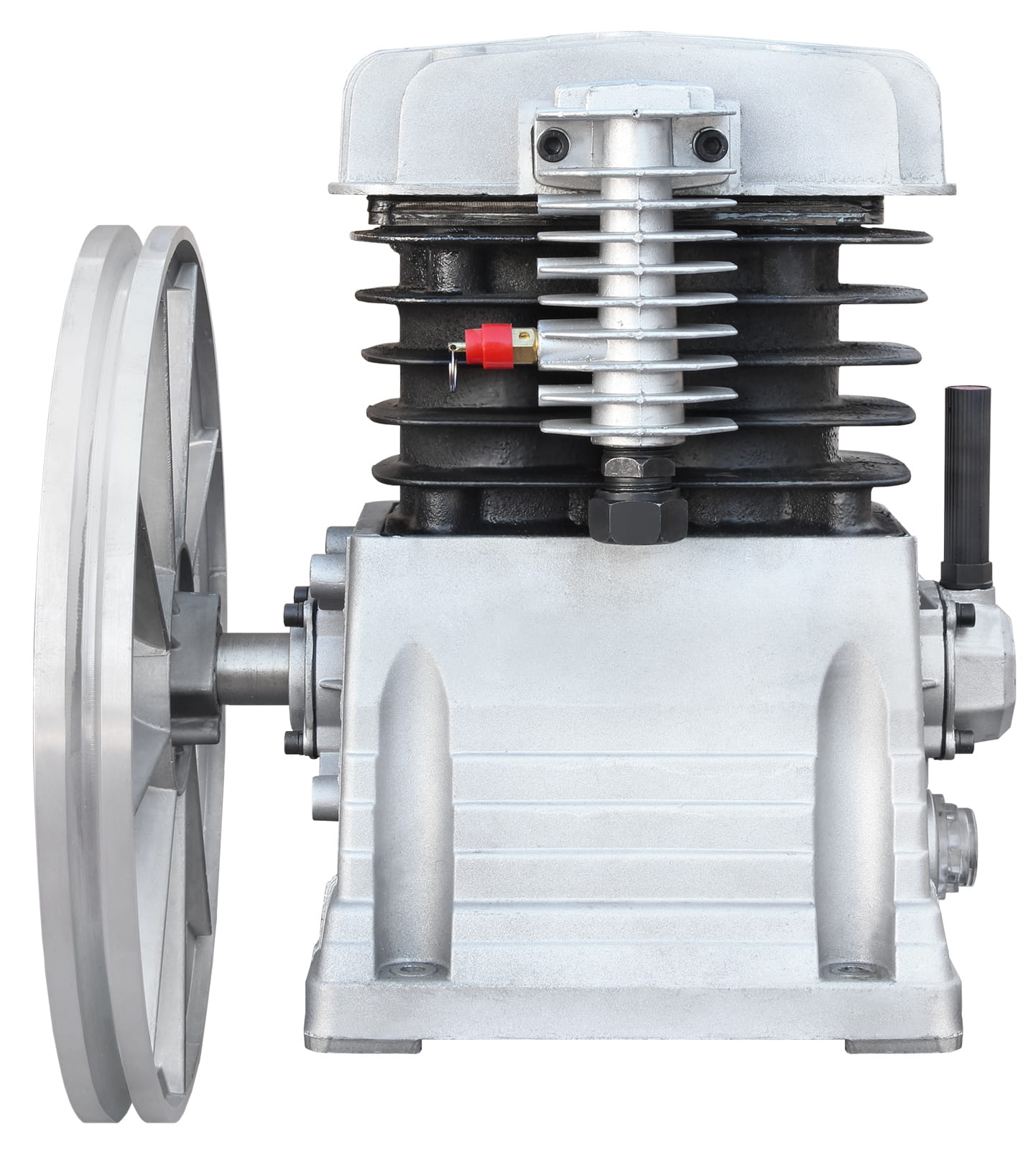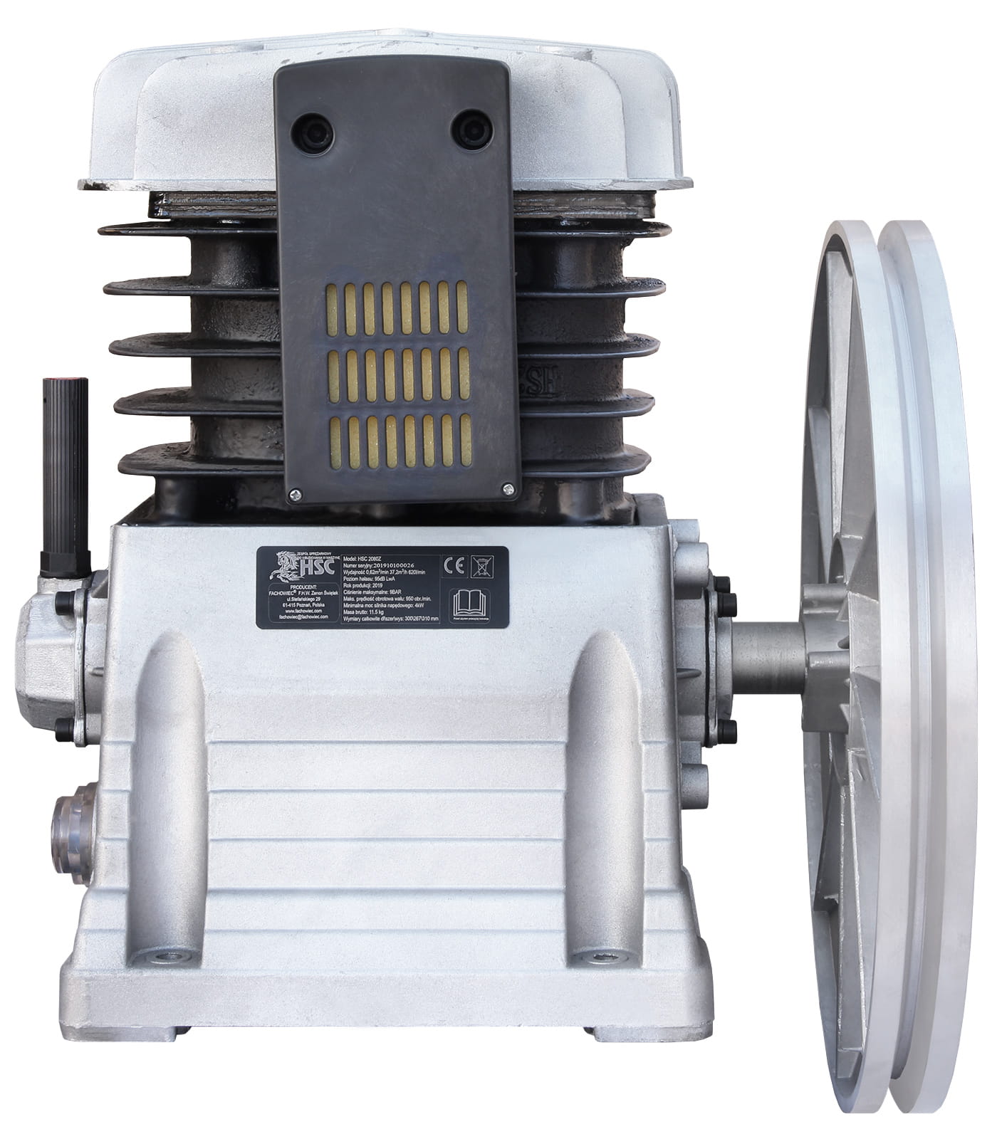 Wysokiej klasy wolnoobrotowy agregat sprężarkowy z żeliwnym blokiem, dwutłokowy, jednostopniowy.