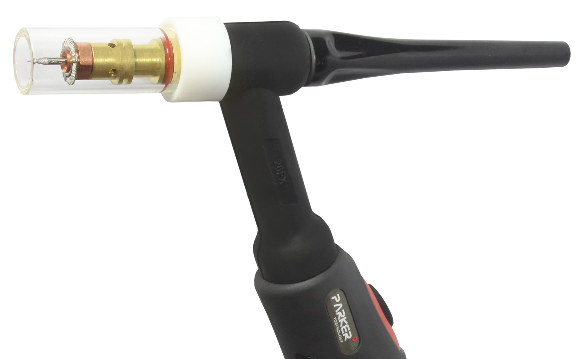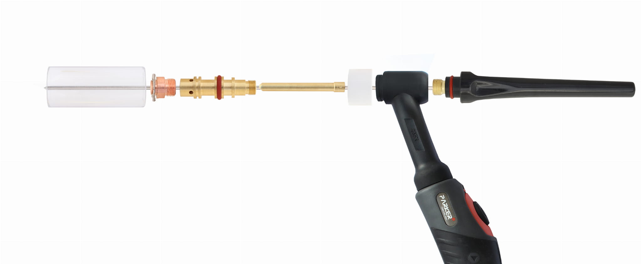 Specjalna konstrukcja soczewki gazowej zapewnia doskonałą osłonę gazową elektrody, jeziorka i ich najbliższego otoczenia. Zwiększony, laminarny przepływ gazu osłonowego precyzyjnie wychładza spoinę i części palnika.
