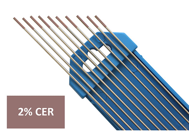 Elektrody wolframowe cerowe (EWCe-2 wg klasyfikacji AWS) składają się z minimum 97,30 procent wolframu i 1,80 do 2,20 procent ceru. Elektrody te najlepsze wyniki osiągają w zakresie spawania DC przy niskich prądach, ale mogą być z powodzeniem wykorzystane również w procesach AC.