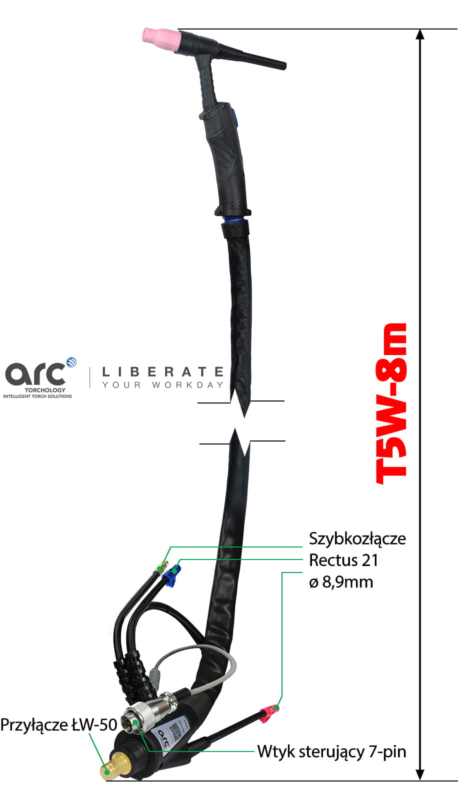 TIG WELDING TORCH ARC T5W 8M SURELOK ŁW-50