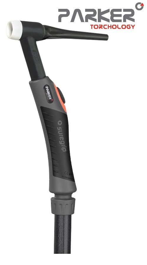 Seria uchwytów spawalniczych PARKER SUREGRIP to połączenie nowoczesnego designu i elegancji oraz wytrzymałości na uszkodzenia mechaniczne. Uchwyty PARKER SUREGRIP Ergo Tig w standardzie posiadają skórzaną osłonę przy rękojeści, która pozwala na nieskrępowaną pracę.