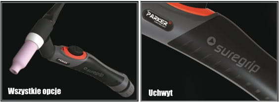 PARKER SUREGRIP Ergo Tig pozwalają na zastosowanie dowolnego typu palnika, takich jak: standard, z zaworem, Flex oraz Multijust. Umożliwia to skonfigurowanie uchwytu wedle personalnych potrzeb każdego użytkownika. Palniki Flex oraz Multijust są rekomendowane dla użytkowników napotykających na co dzień trudne i niedostępne miejsca, w których trzeba wykonać spoinę. Palniki te ułatwiają pracę przez odpowiednie dostosowanie pozycji spawania.