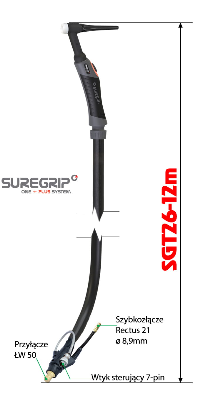TIG WELDING TORCH PARKER SUREGRIP SGT26 FLEXIBLE 12M