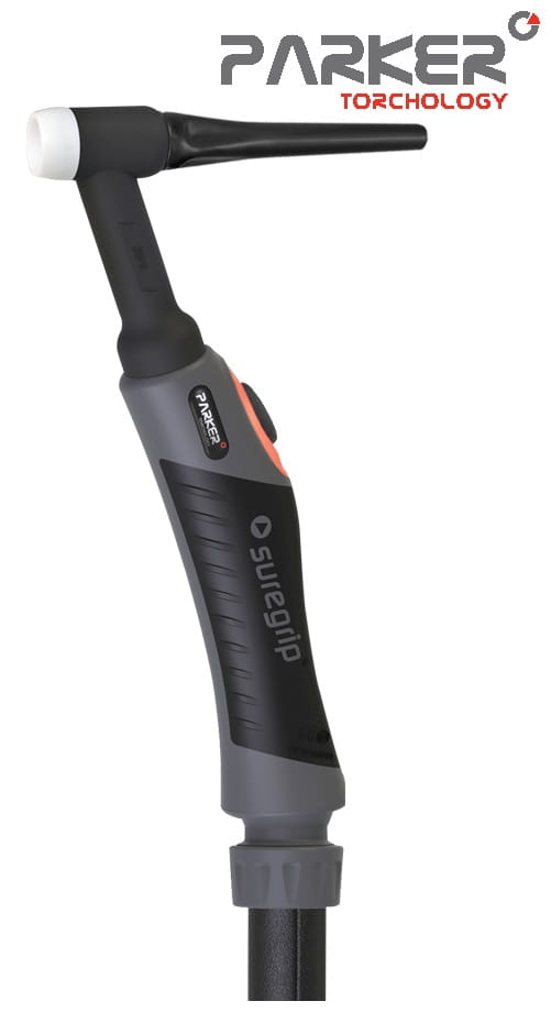 The PARKER SUREGRIP welding torch series is a combination of modern design and elegance as well as resistance to mechanical damage. PARKER SUREGRIP Ergo Tig torches are equipped as standard with a leather cover at the handle, which allows unrestricted work.