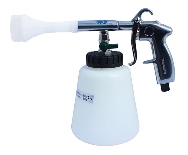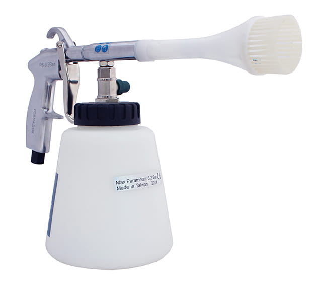 Skuteczny pistolet do czyszczenia na mokro wszelkiego rodzaju zabrudzeń karoserii i wnętrza samochodu, w tym klimatyzacji, elementów lustrzanych i z tworzywa, siedzeń, tapicerki, dywaników, wylotów powietrza oraz wszelkiego rodzaju trudnego do usunięcia brudu i zanieczyszczeń.