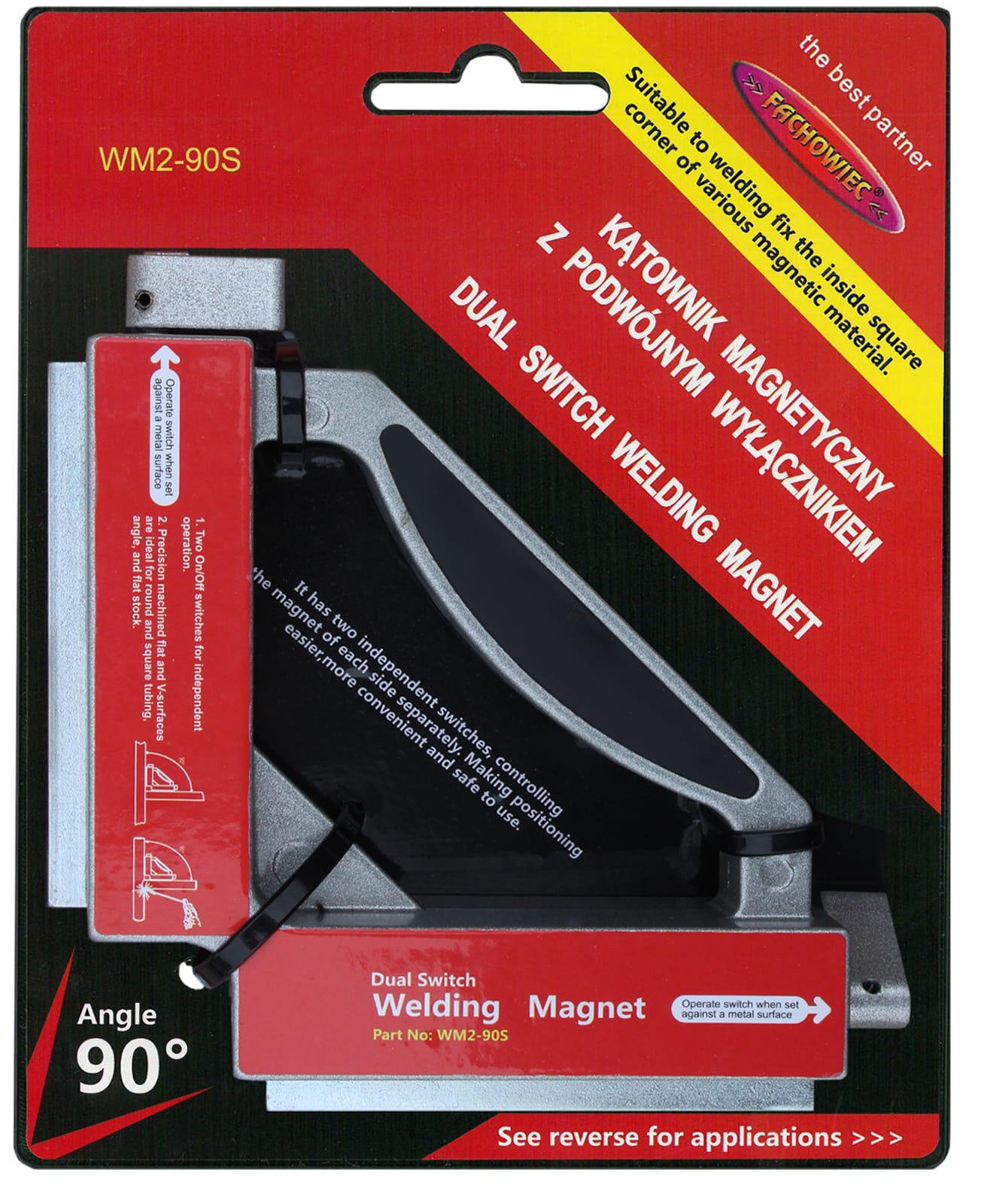 Profesjonalny kątownik magnetyczny WM2-90S z dwoma wyłącznikami znajduje zastosowanie przy obróbce i spawaniu metali oraz innych dziedzinach przemysłu.