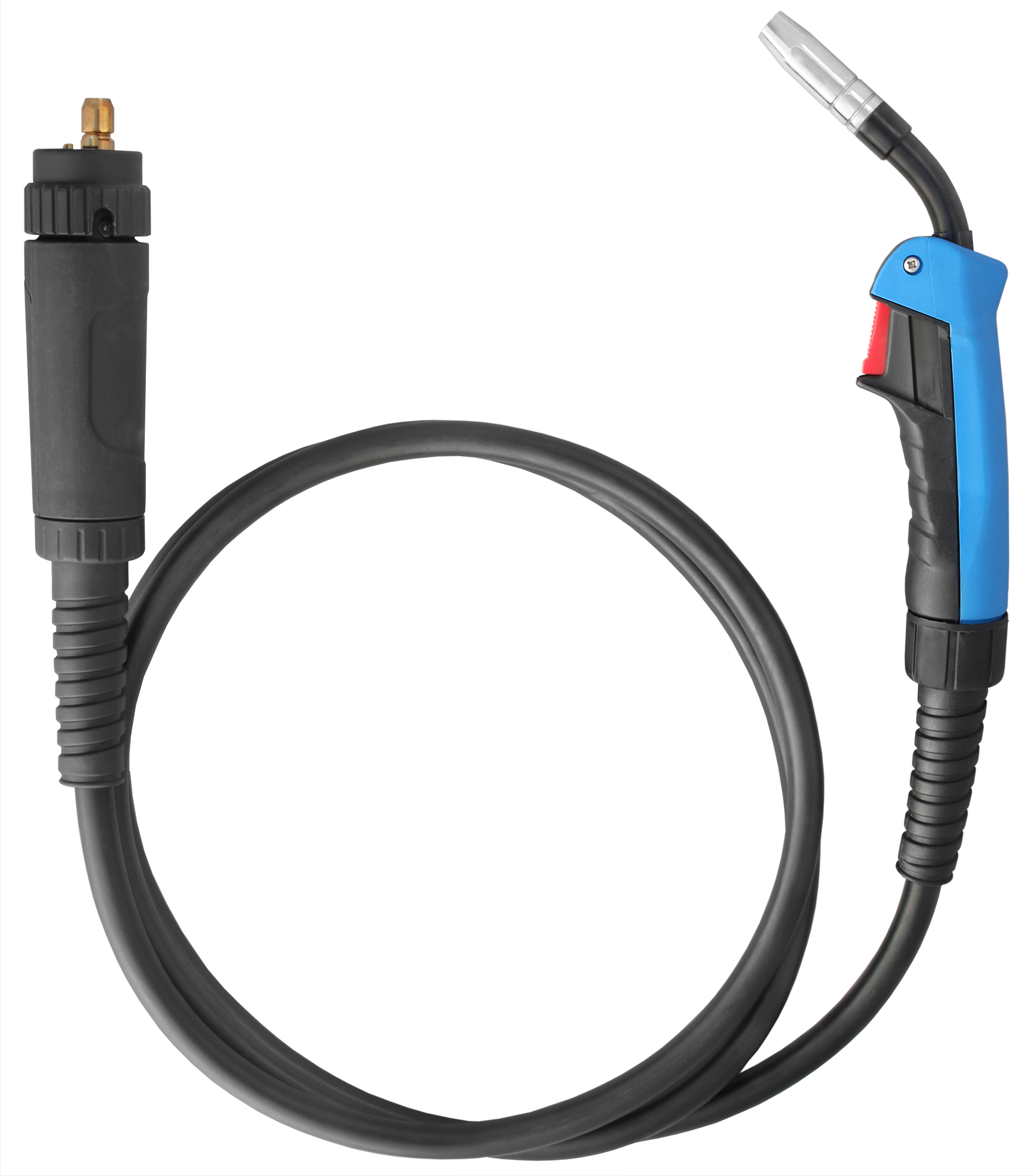 The standard BINZLA-type torch is equipped with a standardized EURO-type connector, compatible with most welding semi-automatic machines.