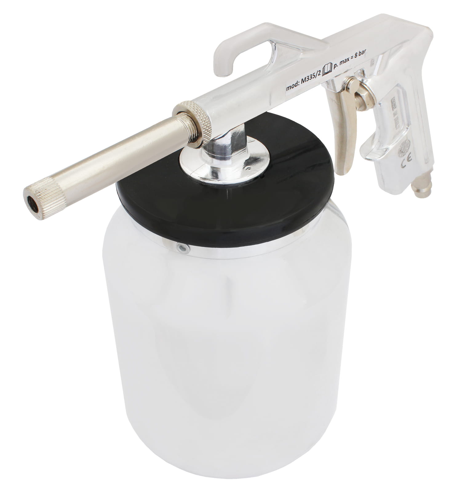 Profesjonalny pistolet ze zbiornikiem 1l do piaskowania, idealnie nadaje się do oczyszczania powłok stalowych lub aluminiowych elementów w całości czy przy użyciu szablonów.